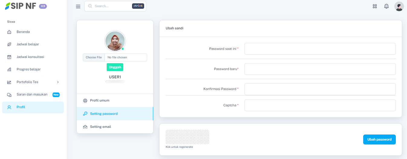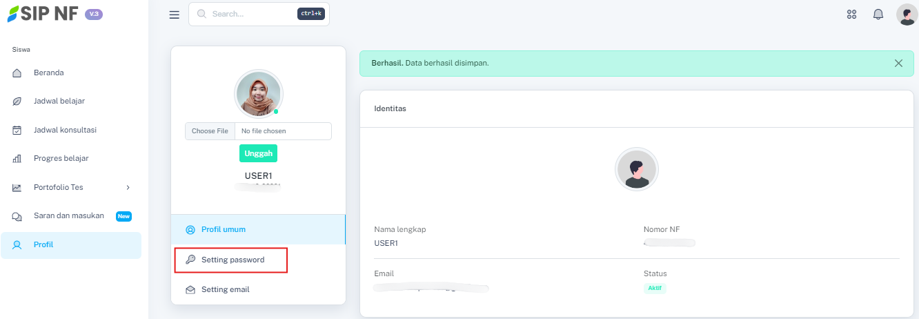 1. Masih di halaman profil, pilih menu "SETTING PASSWORD" untuk mengakses fitur ubah password.