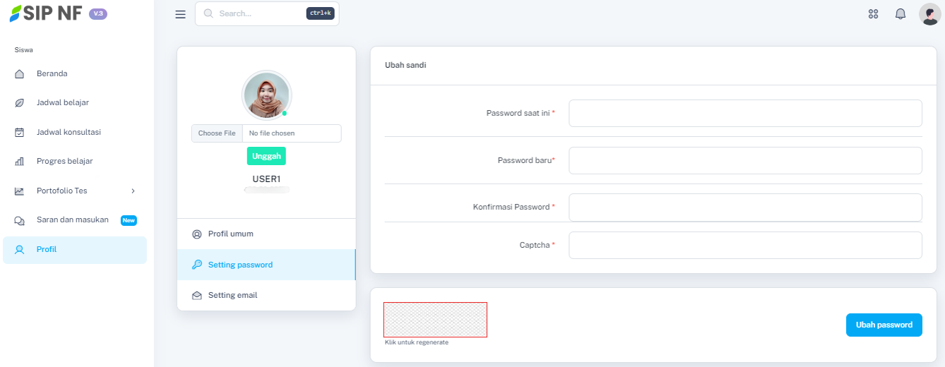 Masih di halaman profil, pilih menu "SETTING PASSWORD" untuk mengakses fitur ubah kata sandi. Jika sudah, maka akan muncul tampilan seperti dibawah: