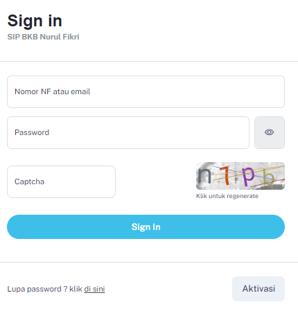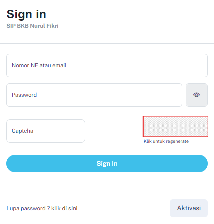 - Masukkan nomor NF yang telah diberikan oleh staff Nurul Fikri atau masukkan email yang sudah terdaftar.