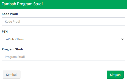 4. Klik "Kembali" untuk membatalkan pengisian data atau klik "Simpan" untuk menyimpan data program studi.