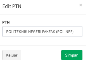 2. Isilah dengan nama PTN yang diinginkan, lalu klik "Simpan".
