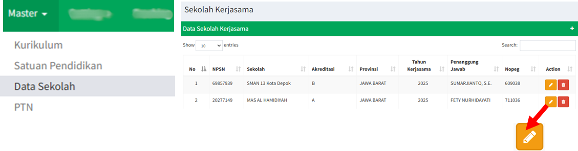 Mengedit Data Sekolah Kerjasama