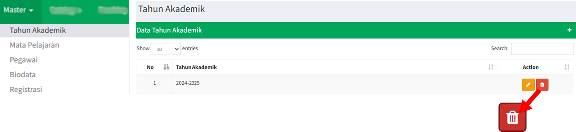 Menghapus Data Tahun Akademik